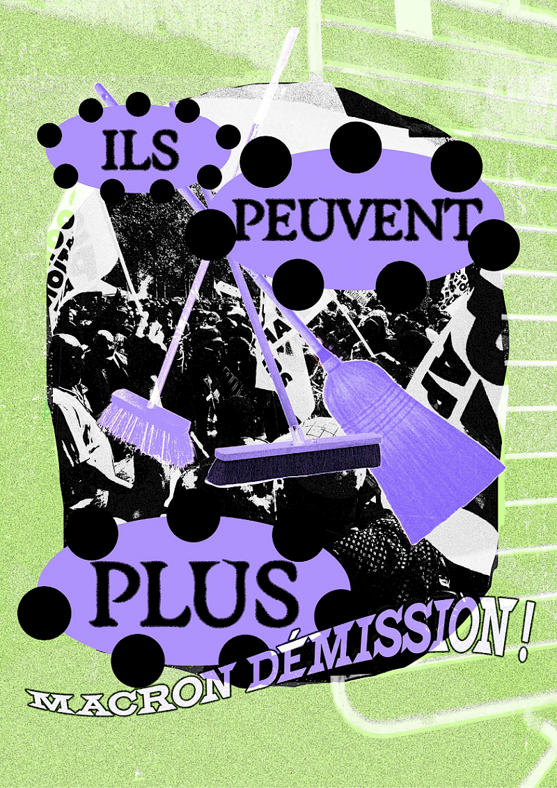 Graphistes, artistes, illustrateur·ices, contribuons par nos images à faire grandir cet élan qui veut mettre un coup d’arrêt aux politiques néolibérales et capitalistes qui détruisent nos droits, saccagent la planète, enrichissent les riches et font le nid de l’extrême droite – des politiques dont Macron et sa clique sont l'incarnation ultime et caricaturale. Dessinons un autre horizon, de solidarité, de partage et d'égalité. Exprimons nos indignations, nos espoirs, nos idéaux en images pour donner forme aux luttes, pour rendre visible, partout, ce mouvement et ses aspirations !