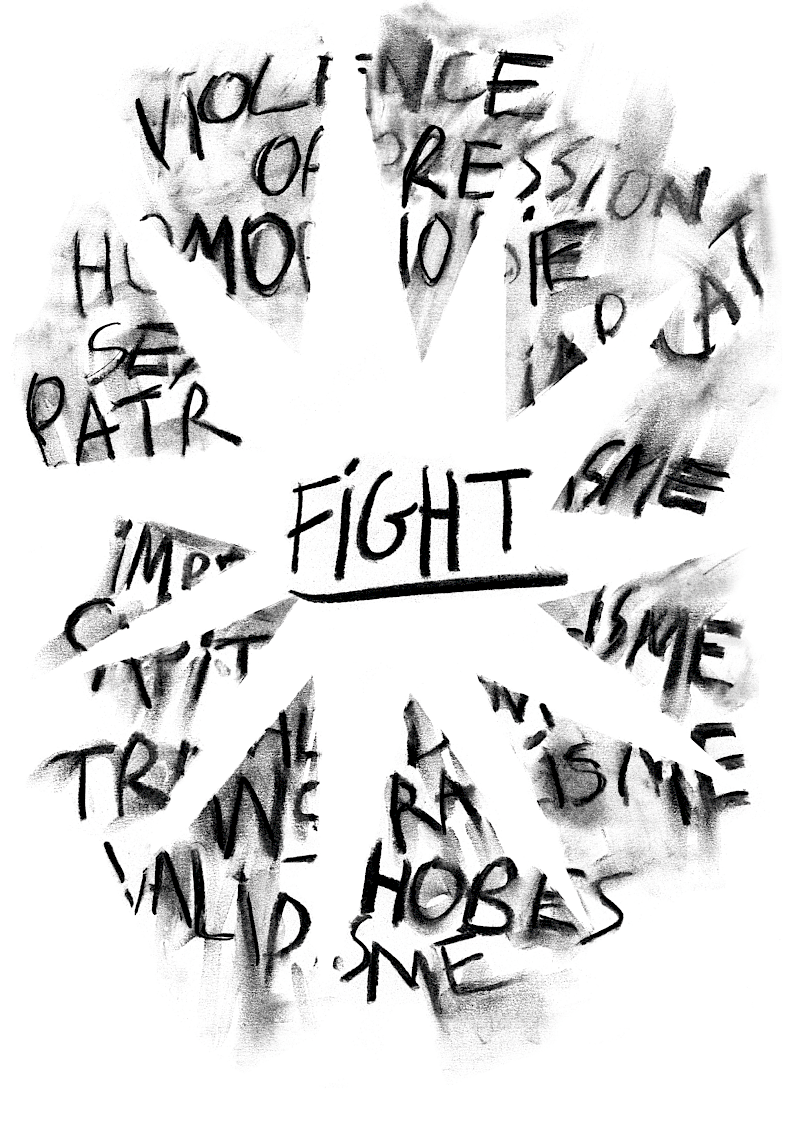 Graphistes, illustrateur.ices, dessinateur.ices, plasticien.nes, cinéastes, étudiant.es, écrivain.es… mélangeons nos traits, nos revendications, soyons intersectionnel.les ! Renforçons-nous collectivement pour mieux occuper l’espace public. Pour que nos conquis ne reculent jamais, pour conquérir de nouveaux droits, créons ensemble les images de ces luttes, de nos solidarités, de nos sororités, de notre soutien aux minorités sexuelles et de genre.