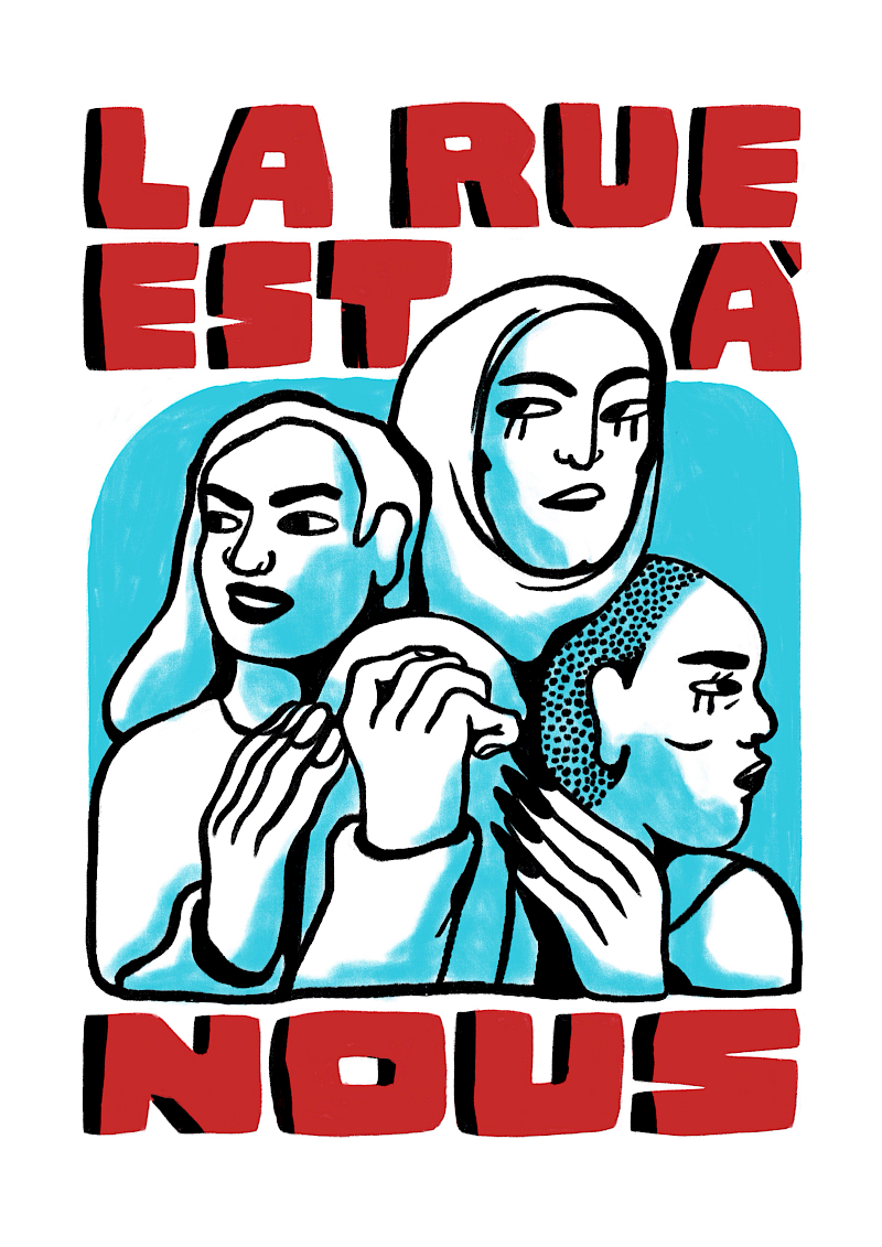 Graphistes, illustrateur.ices, dessinateur.ices, plasticien.nes, cinéastes, étudiant.es, écrivain.es… mélangeons nos traits, nos revendications, soyons intersectionnel.les ! Renforçons-nous collectivement pour mieux occuper l’espace public. Pour que nos conquis ne reculent jamais, pour conquérir de nouveaux droits, créons ensemble les images de ces luttes, de nos solidarités, de nos sororités, de notre soutien aux minorités sexuelles et de genre.
