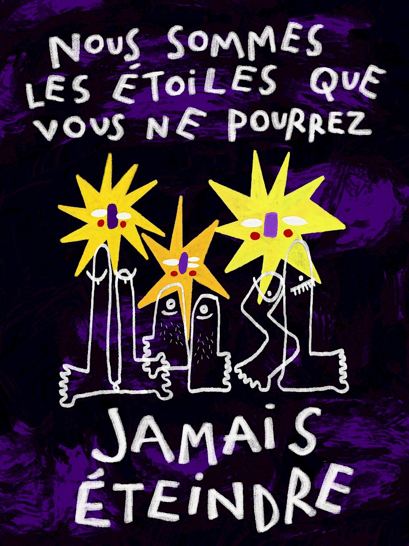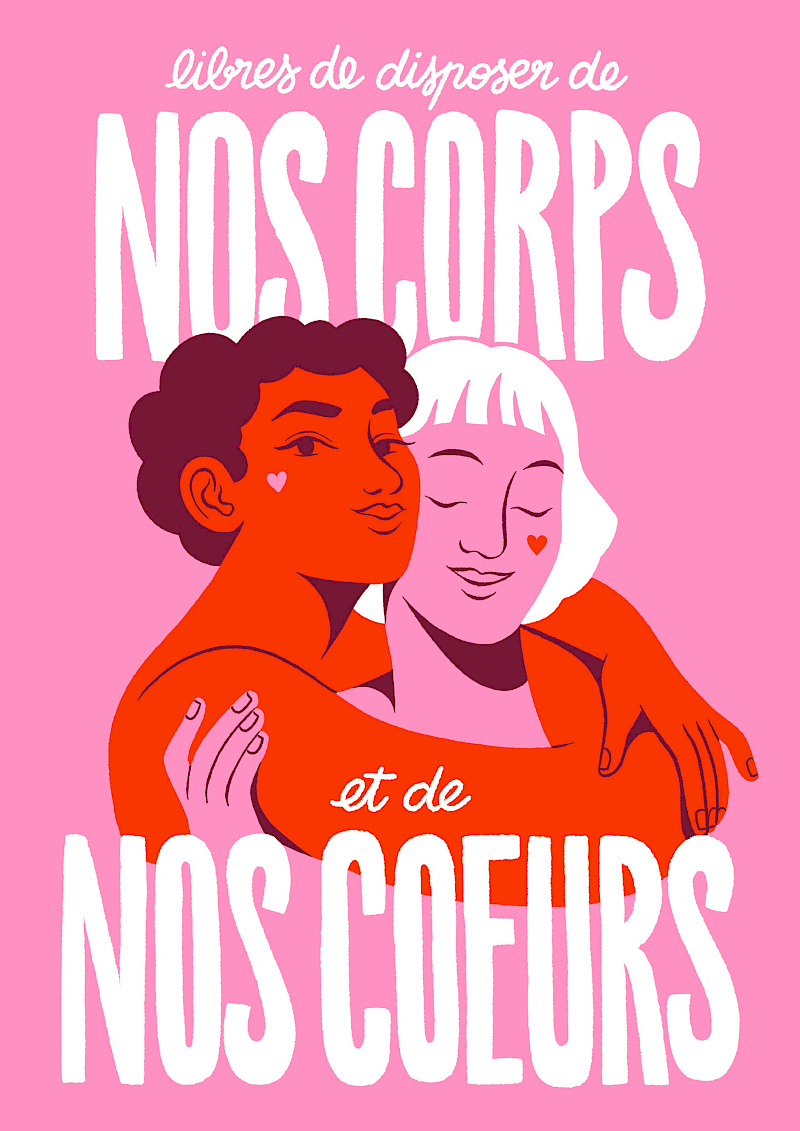 Graphistes, illustrateur.ices, dessinateur.ices, plasticien.nes, cinéastes, étudiant.es, écrivain.es… mélangeons nos traits, nos revendications, soyons intersectionnel.les ! Renforçons-nous collectivement pour mieux occuper l’espace public. Pour que nos conquis ne reculent jamais, pour conquérir de nouveaux droits, créons ensemble les images de ces luttes, de nos solidarités, de nos sororités, de notre soutien aux minorités sexuelles et de genre.