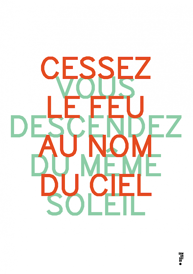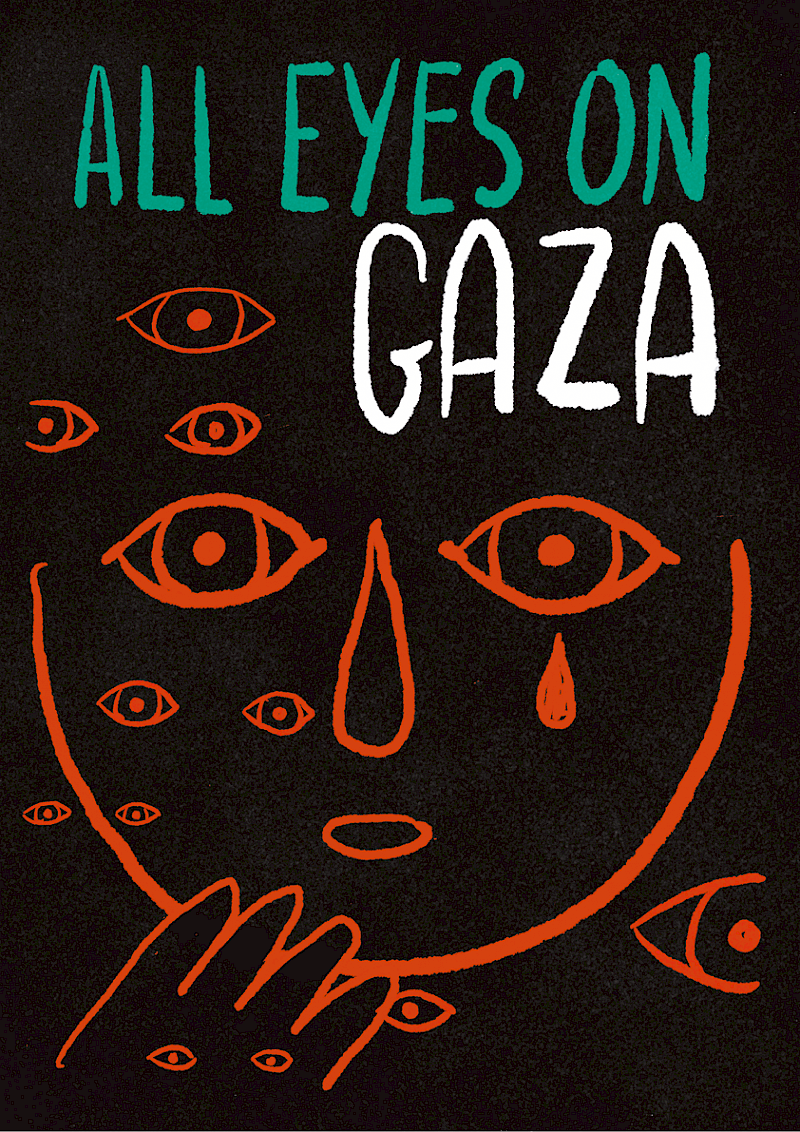 Pour participer, avec nos moyens de graphistes ou d’artistes visuel·les, à sensibiliser, alerter, informer sur le massacre en cours, afin d’y mettre fin au plus vite et de résoudre les causes profondes d’une situation intolérable, nous accueillons ici des images en soutien à Gaza et aux Palestinien·nes, qui peuvent être envoyées à formes.luttes@gmail.com (pdf ou psd A3 CMJN et/ou NB, 6 mm de fond perdu, pas de traits de coupe), et qui sont librement téléchargeables, diffusables et imprimables dans le cadre d’un usage militant et non-commercial.